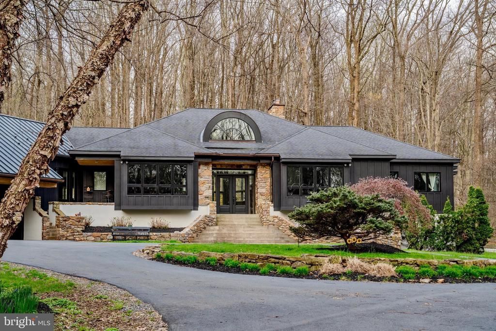Some properties are simply a home. This one is something more, a rare opportunity for multi-generational living, a private homestead, or a flexible family estate, all wrapped into one extraordinary Chester County property. Tucked at the very end of a long, semi-private road, 2800 Horseshoe Trail arrives with intention: a sweeping circular driveway, striking new James Hardie board-and-batten siding with stone accents, and 8.5 open, picturesque acres overlooking Birchrun Creek. For buyers who value land, space, and the ability to breathe, this is it. What makes this home truly exceptional is its ability to live as one cohesive single-family estate or as a thoughtfully designed property where multiple generations can exist under one roof with genuine independence. The main residence features a dramatic octagonal Great Room with soaring cathedral ceilings, fireplace, custom built-ins, and a full wall of windows framing the natural surroundings. The primary suite is a spa-caliber retreat with heated floors, a cast iron clawfoot tub, quartz countertops, a windowed walk-in shower, and a custom dressing area with walk-in and cedar closets. The updated kitchen offers quartz countertops, hardwood floors, a walk-in pantry, and a sun-drenched breakfast area with access to a hardscape patio. A formal dining room, powder room, and oversized laundry room with its own exterior entrance round out the main level. A short transition from the main living area leads to two additional bedrooms, a shared living space, and a conveniently located second laundry area, offering separation and flexibility within the main home. The true versatility of this property is further enhanced by a substantial addition, thoughtfully designed with a kitchenette with custom cabinetry, quartz countertops, and new appliances, an open living area, a bedroom with custom walk-in closet, a full bath with seamless walk-in shower, multiple French doors, and a private exterior entrance. Designed to function independently, this space is ideal for aging parents, adult children, long-term guests, or a live-in caretaker. The lower level continues the story. A fully finished basement offers a remodeled full bath, mirrored wet bar, exercise or lounge area, a bright bedroom, and an unfinished section with windows and outside access — yet another self-contained retreat, perfect for additional living or a flex space that grows with your needs. In total, the home offers approximately 7,500 square feet of living space across four bedrooms, an office, a den, two living areas, a kitchen and a kitchenette, two laundry rooms, four full baths, and one half bath — all on 8.5 private acres, surrounded by scenic woodlands and premier horse farms, yet minutes from Route 100 and the Pennsylvania Turnpike. This is not just a house. It is a property designed for the way families actually live.